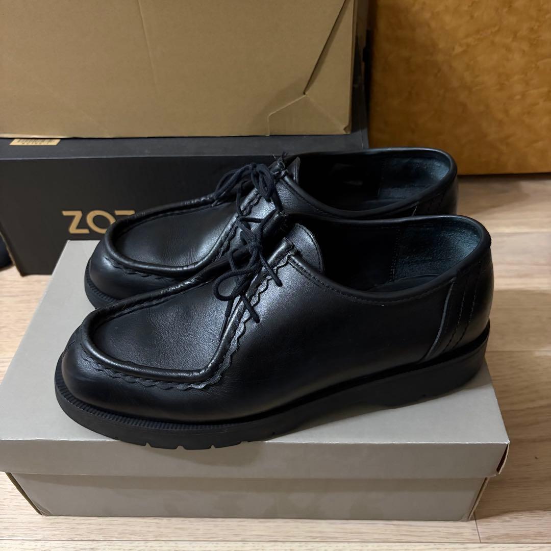 人気モデル \"ダブルリング ブラッチャーモカシン\" アッパーの中央にダブルリングとストラップが取り付けられたこのモカシンは、NEPENTHESの別注によって生まれたオリジナルデザイン。イングリッシュクロームレザーの味わい深さとハンドメイドならではの温かみのある表情を、主張のあるシルバーリングが引き締めるユニークなデザインが特徴です。。【希少】Timberland 3eye Classic 黒 US10.5W。新品Timberland メンズ モカシンお店の情報